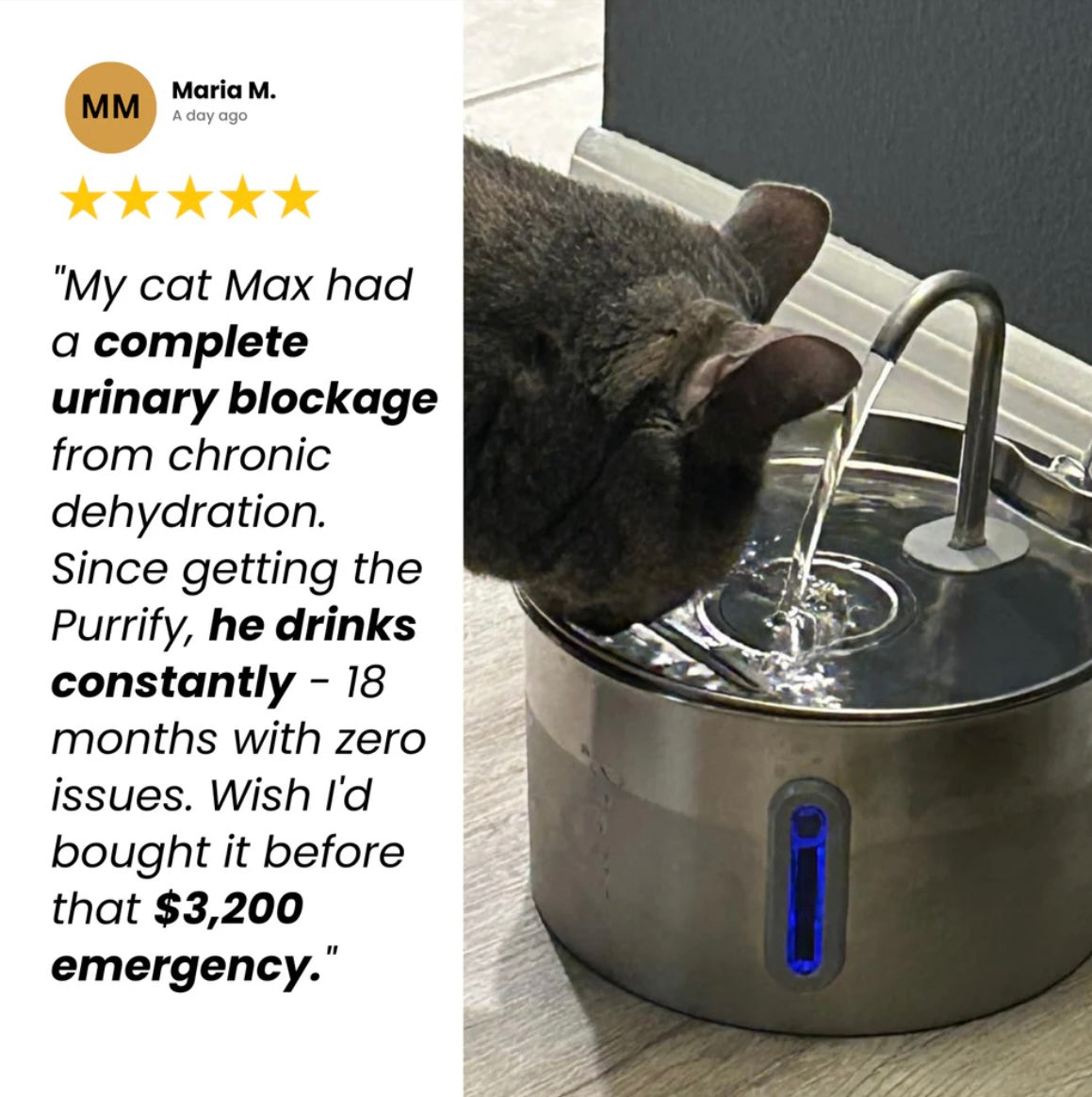 Result: Your cat finally drinks all day, preventing the blockages and kidney damage you've been terrified of.
