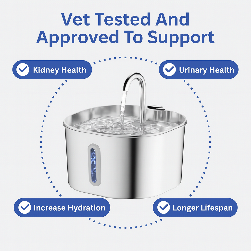 Our anti-bacterial stainless steel stops the contamination that makes your cat refuse water, while our Triple Filtration System removes the microscopic triggers that scream "danger" to its senses. Combined with our whisper-quiet laminar flow that oxygenates every drop, it recreates the fresh mountain streams your cat's DNA trusts — finally breaking its sink-begging habit. Cat parents report their cats drinking 3x more within 48 hours, with many saying "I actually hear my baby lapping water again" and "no more 2 AM faucet begging." This dramatic increase in hydration starts flushing crystals immediately, preventing those terrifying blockages before they ever form.