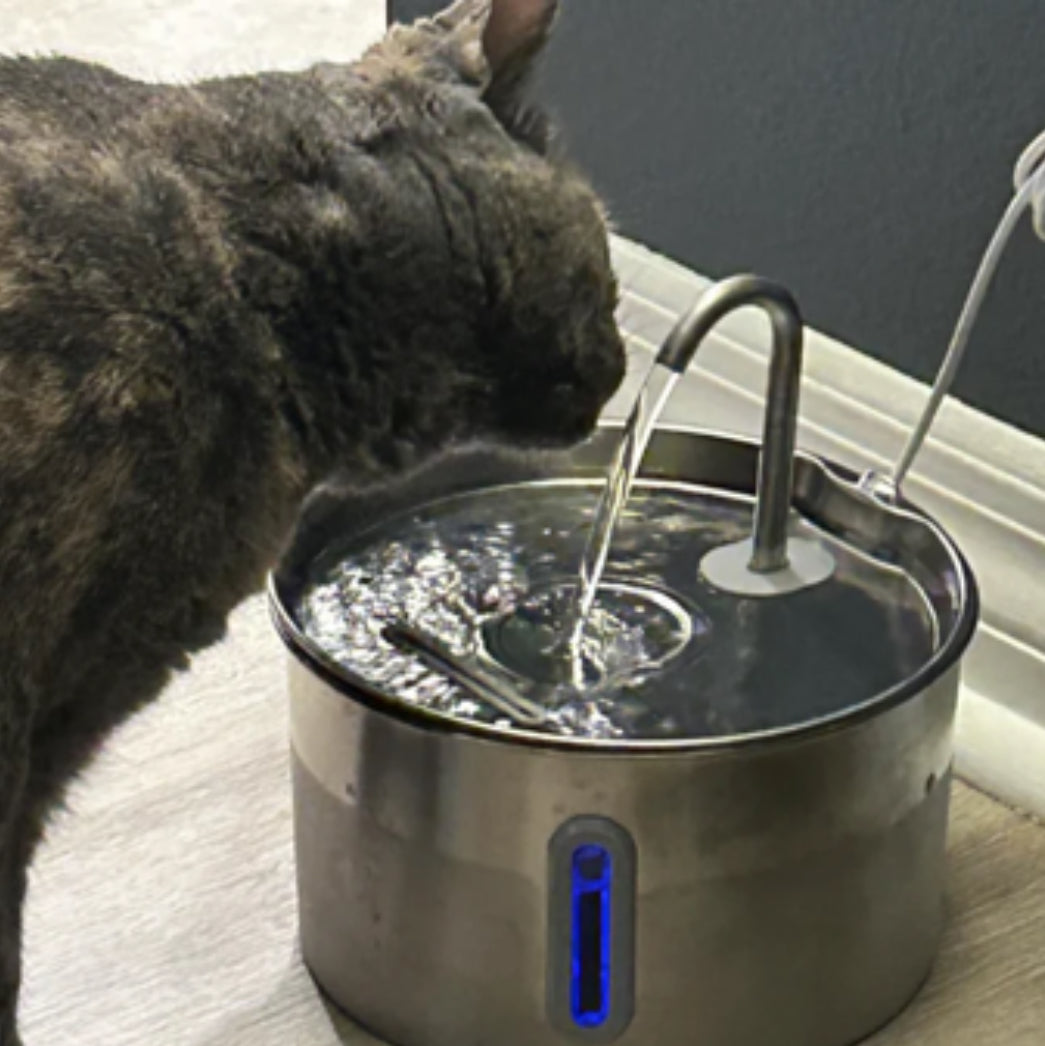 My vet recommended a stainless steel fountain after my cat got a bacterial infection, got dehydrated and had a seizure. She said stainless steel retards the growth of bacteria (even in filtered water). My cat loves this fountain. My other two were a bit stand-offish at first because the water bubbles up faster than their old plastic fountain but they love it now. It is easier to clean too. Recommended it to my sister - her cat loves it too.